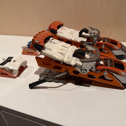 K2 Wayback 82 frikjøringsski med Rottefella NTN freedom bindinger. Kommer med feller tilpasset skiene og støvler. Skiene har en skade som er profesjonelt reparert. Noe merker etter staver bak bindinger.
