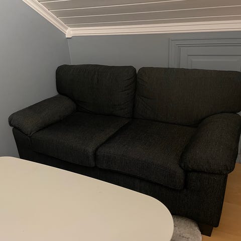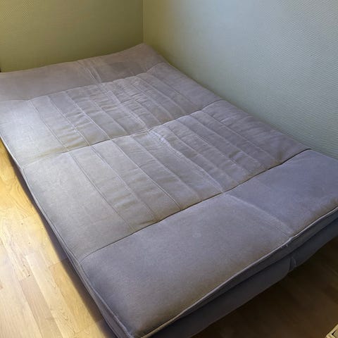 Lampolet sovesofa, den har blitt brukt ved gjestebesøk.
