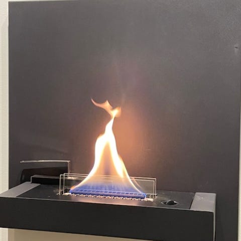 Tenderflame Iris peis. Mørk grå keramikk-betong look. Gir ca 2000 watt. Passer like bra inne som ute da den ikke soter. Ca 2 liter Tenderflame brensel følger med.
