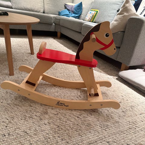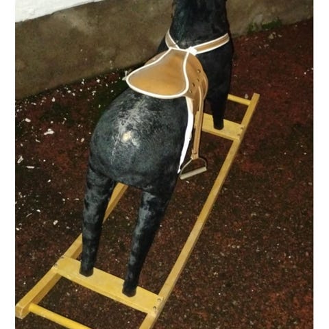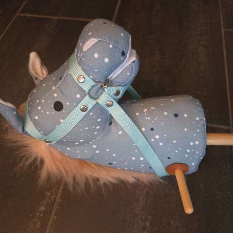 Meget pent brukt lekehest med tilbehør. Kjøpt ny på Sprell til ca. 1.000kr. Høyde: 50 cm, lengde: 45 cm.