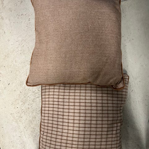 3 stk puter fra Skottland i grått ull-lignende stoff. Fremsiden er 90% polyester, 5% bomull og 5% miksede fibre. Baksiden er 100% bomull. Slitesterk kvalitet, nyvaskede. 150kr for alle tre.