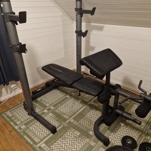 Treningsstativ fra weider pro. Kun stativet som selges når jeg skal oppgradere. Funker perfekt for knebøy, benkpress og øvelser som ellers skulle passe.