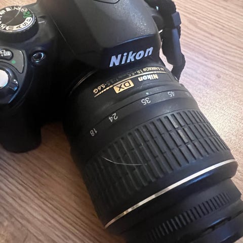 Klassisk Nikon digitalspeilrefleks, her med ny ladder (siden de er kjent for å ryke), ett nytt batteri (fra Duracell) og hendig liten blitz, SB-400. Dette var kamera du kjøpte i 2008, om du syntes Canon G10 hadde for lite futt, eller ikke hadde råd til D90, Nok megapixel for fine A4 bilder og en og annen skikkelig forstørrelse om du fikk blinkskuddet.