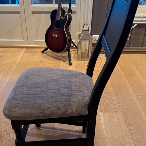 6 stk heltre Talgø Eik stoler sort skinn i sete