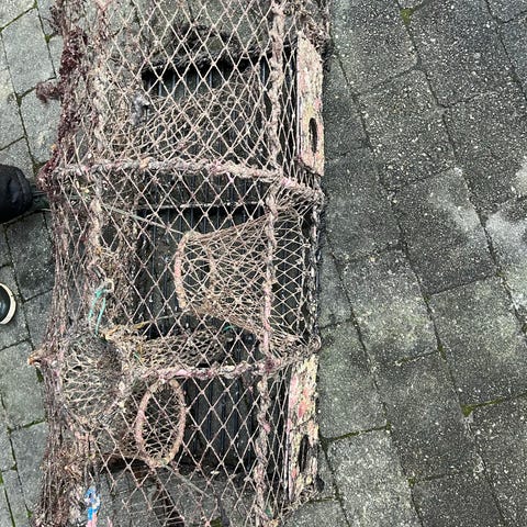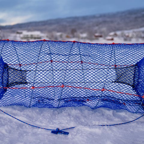 Stor sammenleggbar havfisketeine selges. Brukt kun 3-4 ganger. Ca 6-7 år gammel. Lagret innendørs. Selges med flyteelemter som vist. Selges da den bare ligger her.