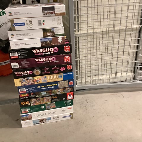Puslespill 1500 brikker selges. Puslet en gang, men esken er litt stygg oppe i hjørnet.
