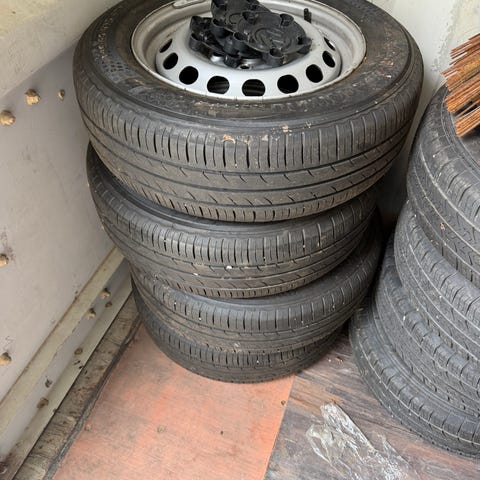 Selger veldig lite brukt ,som ny stålfelger med Goodyear sommerdekk til ny type T7 transporter 2025. Eller Ford transit custom 2025. Bolt sikker 6x120.