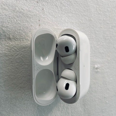 Apple airpods med ladeetui. Designet for trådløs tilkobling og bærbar bruk. Selges ettersom de ikke fungerer som de skal, og jeg har derfor skaffet nye. Blant annet spiller høyre AirPod lavere lyd enn den venstre. Det kan være at de har flere feil enn dette, og det er sannsynlig at tilstanden blir enda dårligere etter enda mer bruk. AirPodsene selges på kjøpers ansvar.