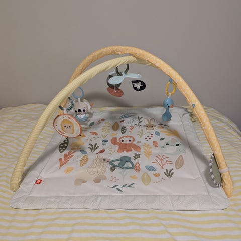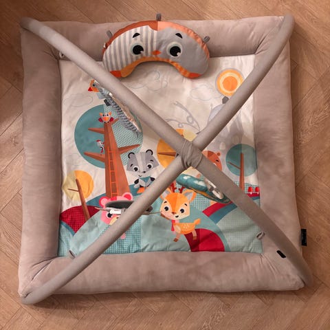 Den er utrolig myk i bunnen og har gode kanter som baby kan ha fin mage trening oppå. Leiene kan taes av og på.