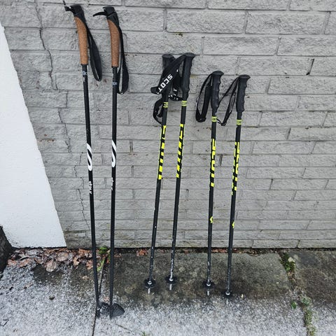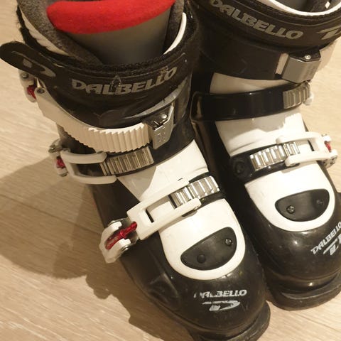 Lite brukt staver 95 cm og ski med bindinger. Lengde ski 120 cm. Bindinger justert til 290 mm