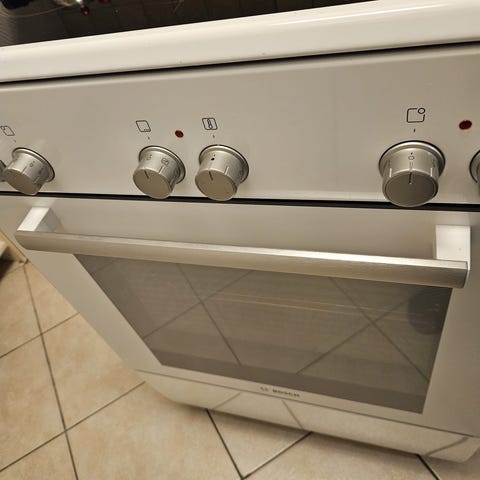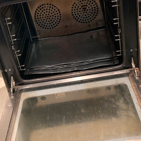 Ca 10 år gammel Siemens stekeovn med rustfri stålfront og glassdør. Et av festene i ovnsveggen er skadet slik at ovnsrillene ikke sitter helt som de skal. Man får fortsatt satt inn stekeristen, men må være litt forsiktig når man tar den inn/ut. Opplever også at ovnen steker litt ujevnt.