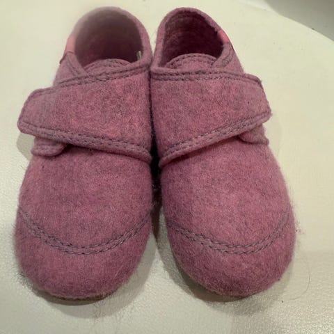 Befado Jente tøfler i størrelse 27. Skoene er svartesølv med rosa innside og har borrelås for enkel justering. Materialet ser ut til å være mykt og fleksibelt, egnet for barn. Skoene har dekorative detaljer på oversiden og gummisåle med mønster for godt grep. Skoene er veldig komfortable. Datteren min elsket dem. Hun brukte dem bare hjemme i siste vinter.