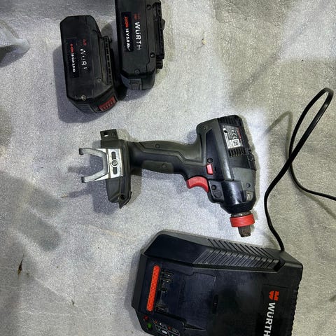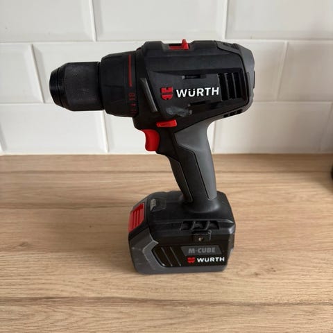 Würzburg 24V Drill Kit inneholder to trådløse bormaskiner med forskjellige funksjoner, inkludert revers og variabel hastighet. Settet inkluderer et utvalg av bor og bits i forskjellige størrelser, lagret i en blå plastkoffert. Batteriene er oppladbare, og settet er egnet for ulike bore- og skrueoppgaver.