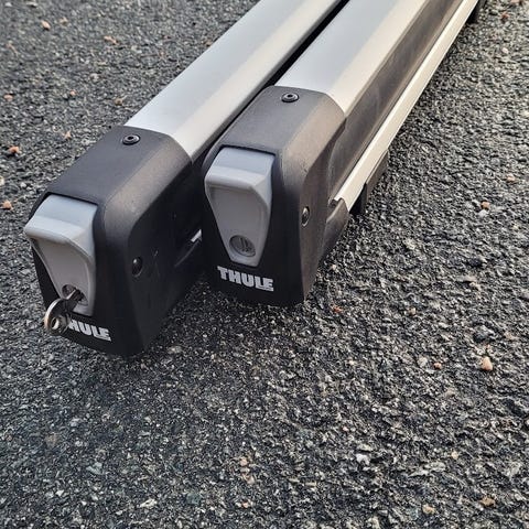 Stativet har stått på en Subaru Forester 09, og passer til biler med hevede takrails. Nypris i 2017 var 3900 for hele settet.