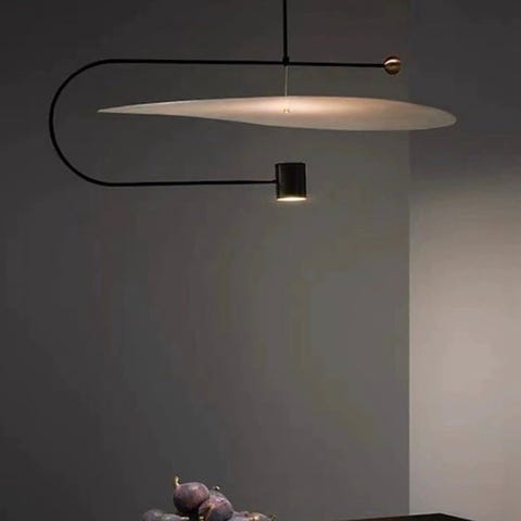 Moderne og dekorativ taklampe med 4 justerbare spotter i sort metall med detaljer i messing. Gir godt lys og passer perfekt over spisebord, kjøkkenøy, gang eller stue.