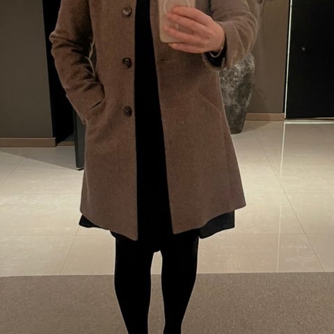 Helt ny kåpe i small byttes til ekstra small. Ullblanding fra Bik Bok.