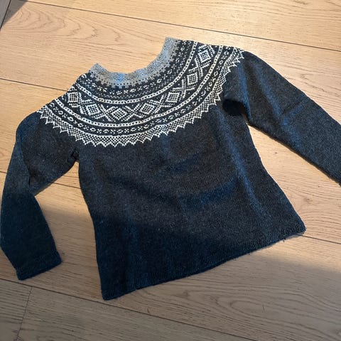 Hjemmestrikket Marius-genser. Kun brukt et par ganger da den er for liten.