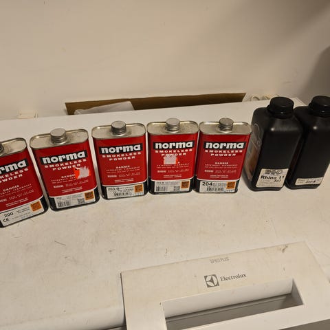 Har 3kg med Norma 11 krutt. Nye uåpnede bokser a 1kg. Selges for 900kr per stk.