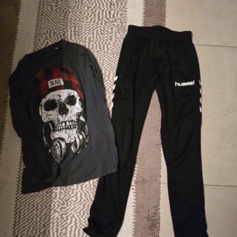 2 stk Hummel Nueve joggebukser, str 164, ene i sort, andre i lilla/fudge. Den sorte har blitt lite brukt, men den lilla er mer brukt. De er hele og fine begge to, litt krøllete og støvete etter å ha lagt brakk. Nypris 399,- pr stk. Selges samlet 200,- Hentes på Fevik eller sendes mot frakttillegg.