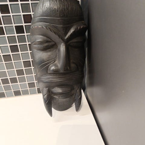 Ukjent merke blomsterdekorert hode skulptur potte med detaljerte blomster og sommerfugler. Potten har en åpen topp for planting og er laget i et materiale som ligner betong eller stein. Egnet for dekorativ innendørs eller utendørs bruk.