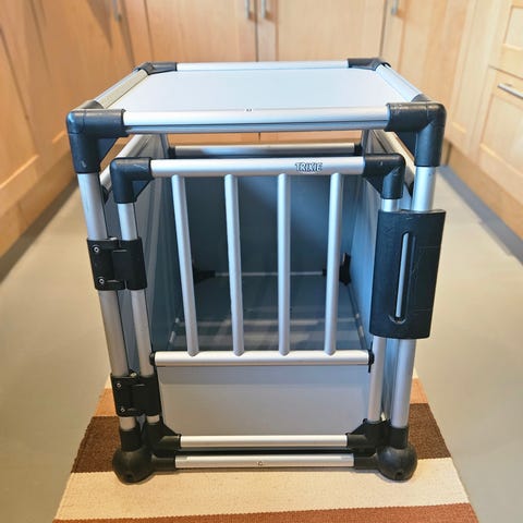Noen kloremerker og litt slitasje, men ellers i god stand. Følger med 2 matter til og ha inne i buret.