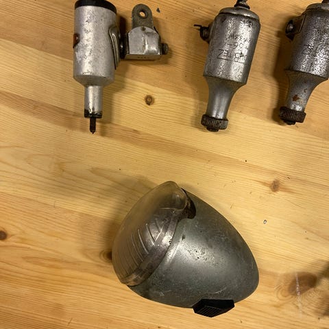 2 godt brukte lykter til 60 og 70 tall sykler, og en dynamo. Ukjent tilstand. Selges samlet for 100,- eller bud.