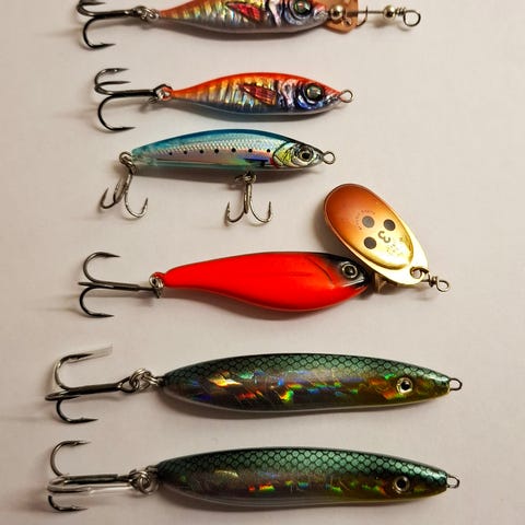 Selger samlet 8 varierte pilker i vekter fra 152 til 197 gram. De er ferdig rigget med splittringer, kroker og noen har fargerike blekkspruter. Flere av disse finnes ikke på det norske markedet. Noen av krokene er nye.