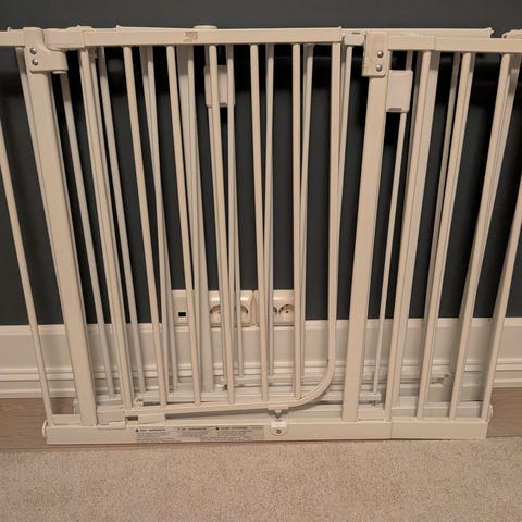 Genial trappegrind som lukker seg selv, som er genialt når man har flere barn eller for mye i hendene. Den kan også settes i åpen posisjon.