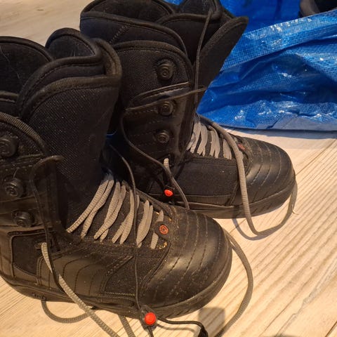 Ubetydelig brukte snowboard-sko selges. Sålens lengde tilsvarer str 39-40, men da bør du ha ganske smal fot. Støvlene passer godt på en normal 38-fot.