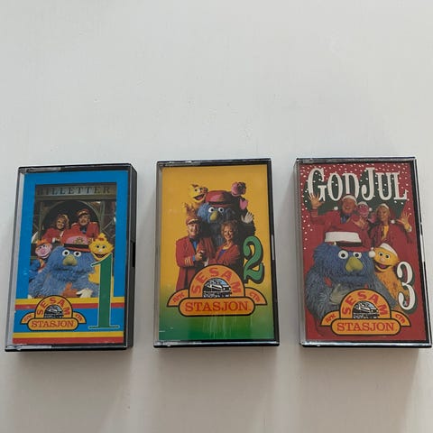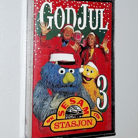 Sesam Stasjon 3 kassett med tittelen God Jul. Kassettbånd i rød plast med stereo lyd. Passer til kassettspillere. Ingen etui