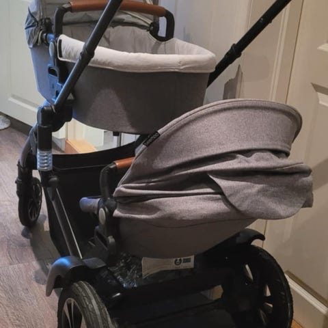 Beemoo tvillingtrille vogn i svart farge. Vognen har to separate seter med justerbare ryggstøtter, sikkerhetsbelter og avtagbare frontbøyler. Under setene er det en oppbevaringskurv. Egnet for to barn og designet for praktisk bruk ved transport av tvillinger eller søsken i samme alder.Jeg har nylig kjøpt en Beemoo BFF60 Søskenvogn i svart fra Jollyroom, som jeg er svært fornøyd med. Den er nesten ny og har bare vært i bruk i noen uker, ettersom jeg har flere andre vogner. Dessverre oppstod det en hendelse da jeg gikk inn døren, og det ser ut til at vognen har blitt misfarget.nesten NY regntrekk jeg bruker bare 4dager