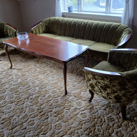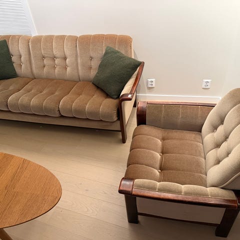 Søkeord: sofa, sofagruppe, lenestol, stol, stoler, vintage, retro, antikk
