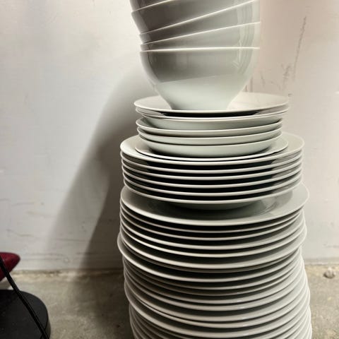 IKEA tallerkensett bestående av 24 deler i beige farge. Settet inkluderer ulike typer tallerkener, egnet for daglig bruk i kjøkken og spisesituasjoner.