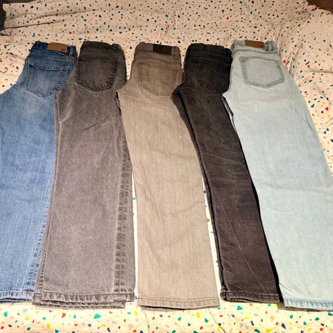 Pent brukte klær for det meste av merkene hunnel, Jack & Jones og Bergans. To ytterjakker, ei regnjakke/frakk, to hunnelgwnsere, ei Bergans turbukse, ei ny og ubrukt dongeri bukse Jack & jones, en hummel joggedress, 1 strikka ullgenser fra grindamor (litt liten i str). Ser ingen feil eller mangler,det eneste noen småflekker på Hummel jakka foran (se bildet) men bare vasket vanlig og det går kanskje vekk med flekkfjerner.