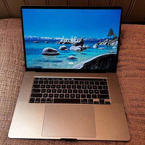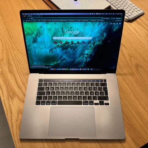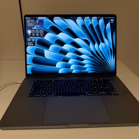 Apple MacBook Pro bærbar PC med sølvfarget metallkabinett. Enheten har bakgrunnsbelyst tastatur og høyoppløselig skjerm.