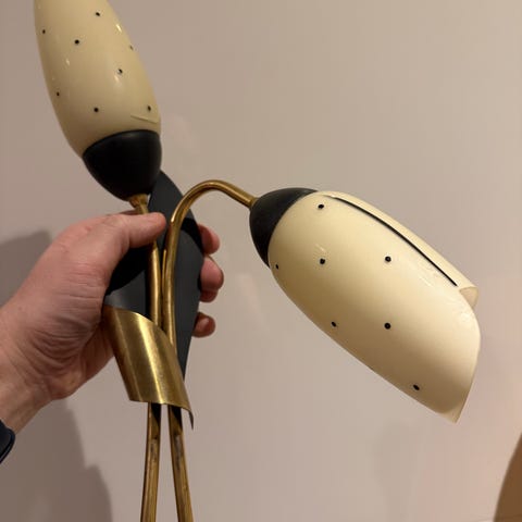 Tilstand: Lampen er i god stand for alderen. Glasset er helt og fint. Metallet har noe naturlig patina som gir den den rette vintage-følelsen.