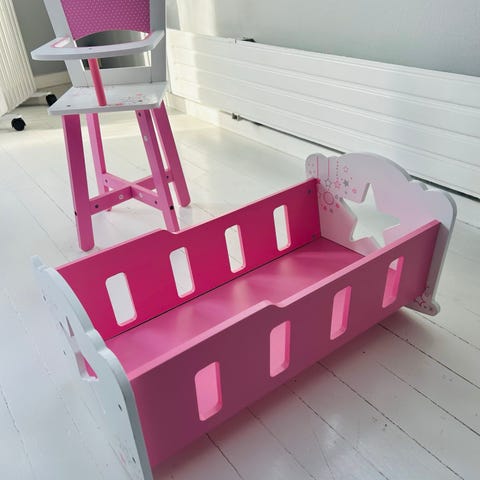 Selger pent brukt dukkeseng og dukkestol. Perfekt for barn som liker å leke med dukker. Selges samlet.