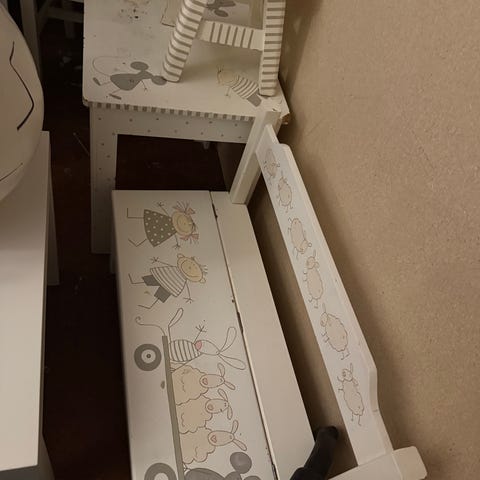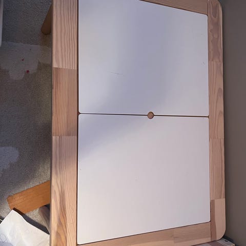 IKEA barnemøbel stellebord i hvit farge med pute. Designet for praktisk bruk ved bleieskift og stell av barn. Flere hyller under bordplaten gir oppbevaringsplass. Laget av tremateriale. Selges for 300kr Må hentes på Bogafjell.