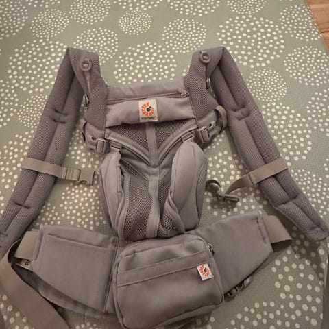 Ergobaby Omni All-in-One bæresele i beige farge. Bæreselen er designet for å bære babyer i forskjellige posisjoner og gir støtte for både barn og forelder. Passer for både gutter og jenter.