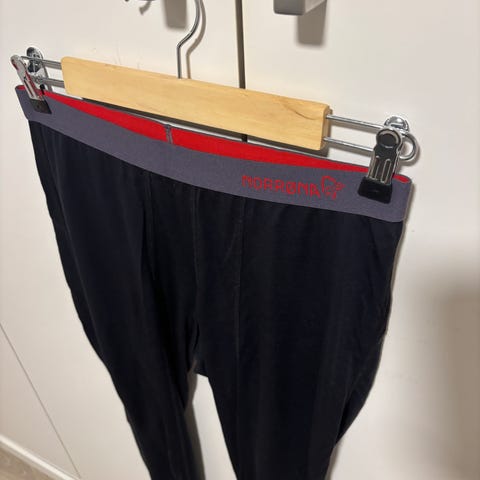 Web-belte med spenne i livet. Forsterkning på kne og bak. Formsydd kneparti. Elastisk justering i skjult kanal ved ankel.