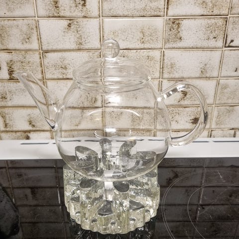 Koselig, klassisk tekanne i blå keramikk. Tekannen har et tradisjonelt design med lokk, tut og håndtak, egnet for brygging og servering av te. Den rommer ca.2 liter væske.