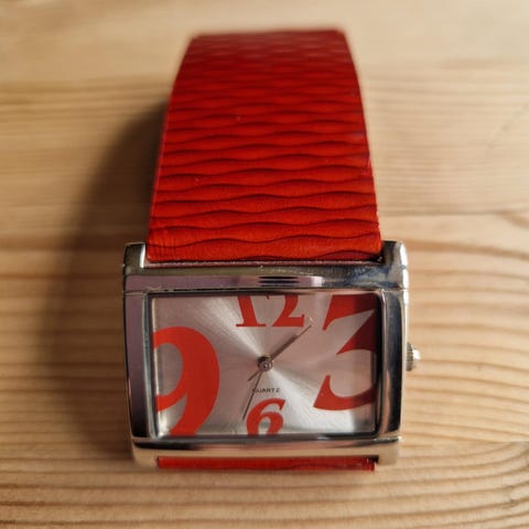 Unisex klokke med kvartsurverk, vannresistent design og stålbånd. Klokken har en urskive med tydelige tall og en roterende bezel. Diameter på urkassen er omtrent 30,5 mm.