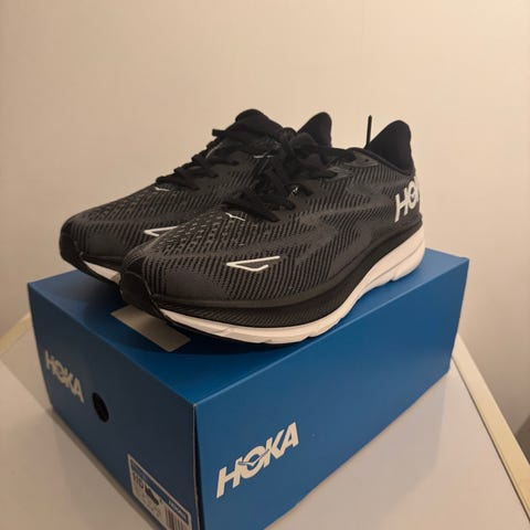 Sorte Hoka Clifton 9. Godt brukt, gått ca 40 mil
