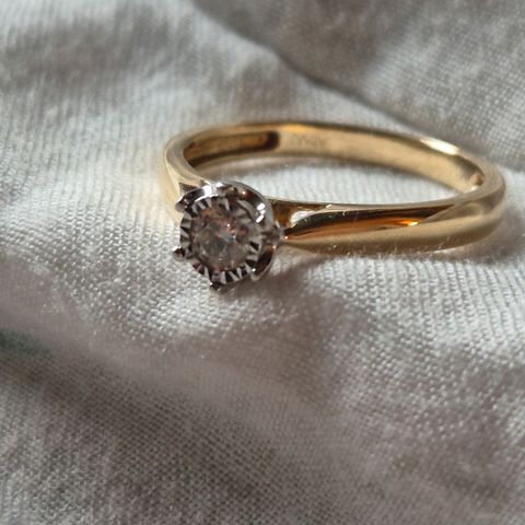 Selger en helt fantastisk flott ring, I gult gull 585 og hvitt gull med 4 små diamanter I. Den har vært på 1 gang. Så ligget i smykkeskrinet. Velger å selge det videre til en som liker det lille ekstra. Str 54. Selges for 5090 ink Norgespakken og forsikring. KUN SERIØSE HENVENDELSER SVARES.