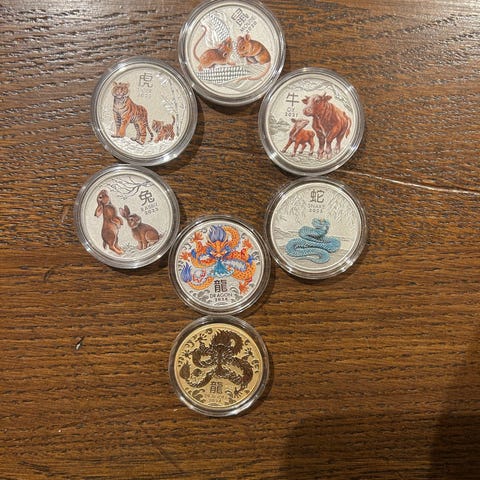 Komplett sett med Lunar 2 Dragon 10-coin 1oz 999s Colour 2012