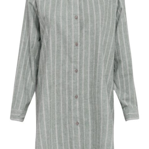 Skjorten har klassiske knapper og en avslappet passform, mens buksen sitter behagelig med både strikk og justerbart knytebånd i livet. Designet med smale, tidløse striper i dempet grønntone – en farge som kler både vintermorgener og sofakvelder.
