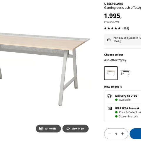 Har selv brukt bordet med 2 skjermer og en stasjonær pc på toppen. Bordet har metall-bein og en metallramme under som bidrar til at bordet er veldig solid og stødig. Beinene kan justeres fra 68cm til 78cm over gulvet slik at den tilpasser seg bedre ergonomisk ved nødvendighet.