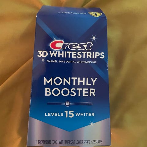 Bestselgende tannbleking som gjør tennene 19 nivåer hvitere, fra det amerikanske merket Crest. Kjøpt i USA. Hver pose med behandling inneholder to strips til hhv. tennene oppe og nede.