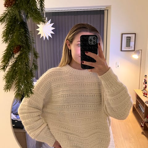 Selger denne nydelige strikkagenseren, strikket i kvalitetsull. Passer S og M.