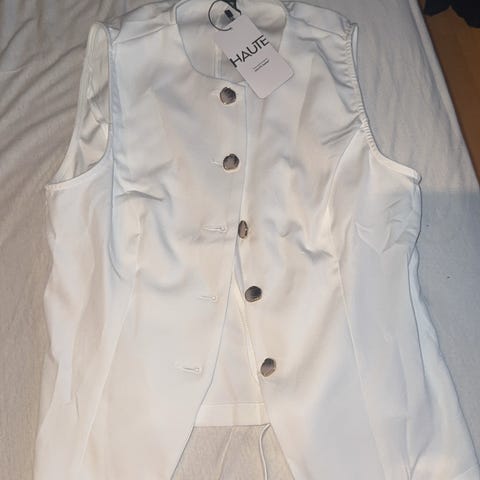 Vest med knapper og lommer. Str m, men passer str. L. Behagelig og fin med strikkegenser og strikkekjoler.